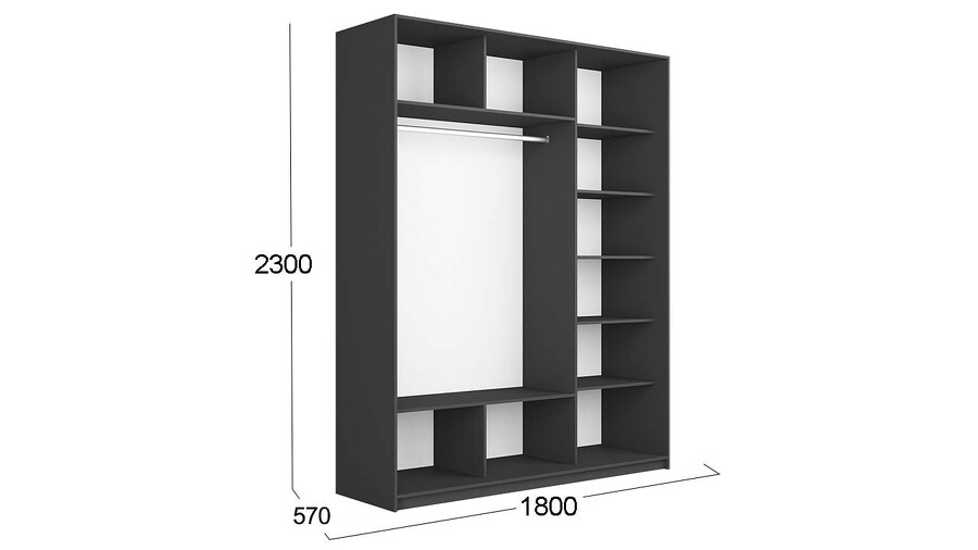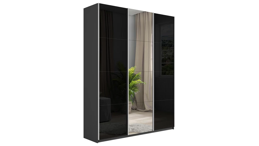 Шкаф-купе 3-х дверный «Траст» - СШК 2.180.60-15.13.15 Серый диамант, Стекло черный глянец/Зеркало/Стекло черный глянец